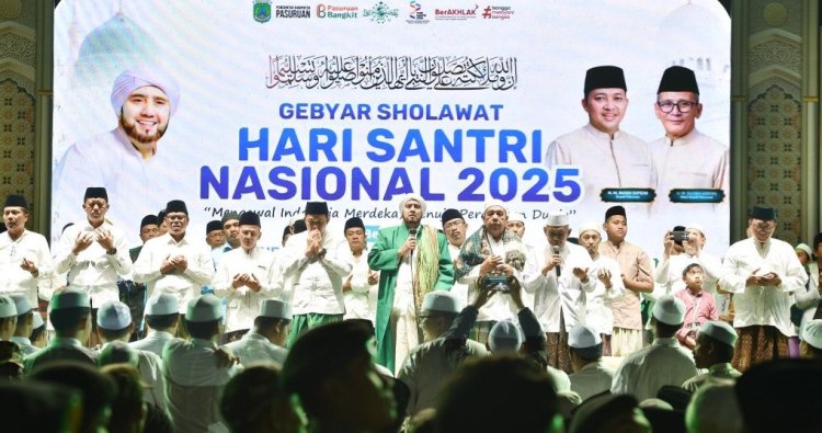 PASURUAN - Puluhan ribu umat Islam dari berbagai penjuru Kabupaten Pasuruan membanjiri Lapangan Patal Grati pada Selasa malam, 21 Oktober 2025, untuk merayakan Hari Santri Nasional melalui sebuah Gebyar Sholawat yang penuh khidmat. Suasana haru dan penuh kekhusyukan menyelimuti acara akbar ini, mempererat tali persaudaraan dan kecintaan umat terhadap Rasulullah SAW.